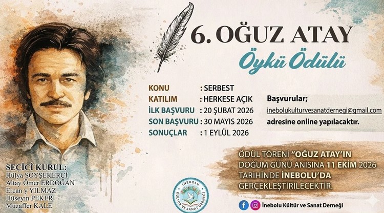 İnebolu Kültür ve Sanat Derneği’nce düzenlenen 6. Oğuz Atay Öykü Ödülü 2026 başvuruları devam ediyor.