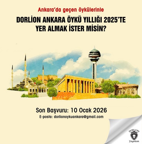Dorlion Ankara öykü yıllığı, 2025 başvurularından son günler. “Ankara’yı Öyküyle Yazıyoruz.” özdeyişiyle duyurulan yarışmada son gönderim tarihi 10 Ocak 2026 olarak duyuruldu.