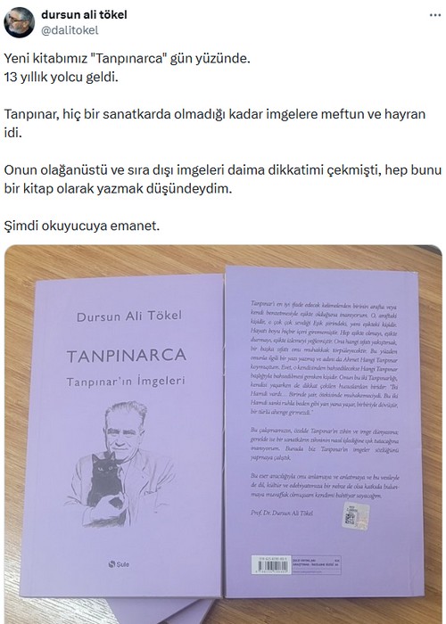 Kitabı, X hesabından duyuran Tökel, esere dair duygularını şu sözlerle ifade etti: