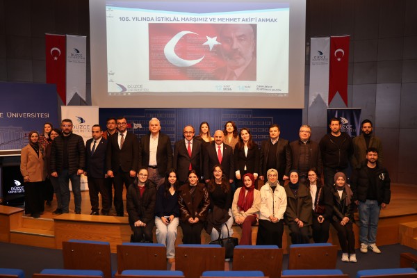 İstiklal Marşı’nın kabulünün 105. yıl dönümünde Mehmet Akif Ersoy’un fikir dünyasının ve milli mücadele ruhunun bir kez daha hatırlandığı program; Düzce Üniversitesi Rektörü Prof. Dr. Nedim Sözbir tarafından konuşmacılara teşekkür belgesi takdimi ve günün anısına fotoğraf çekimi ile sona erdi.