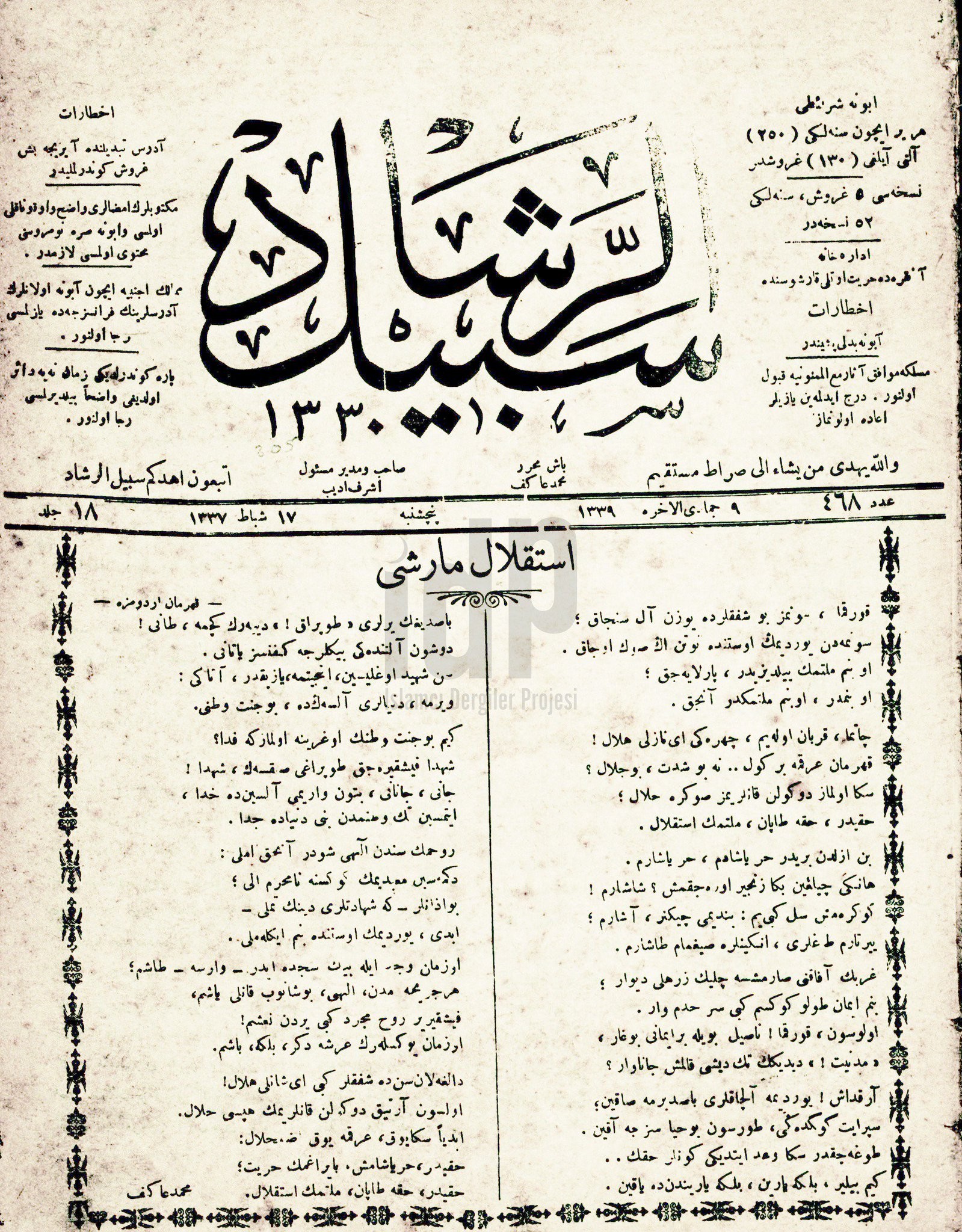 Bu emsalsiz eser, 10 gün içinde tamamlandı ve Mehmet Akif Ersoy’un başyazarı olduğu Sebilürreşad dergisinin 18 Şubat 1921 (9 Cemaziyelahir 1339) tarihli sayısında yayımlandı.