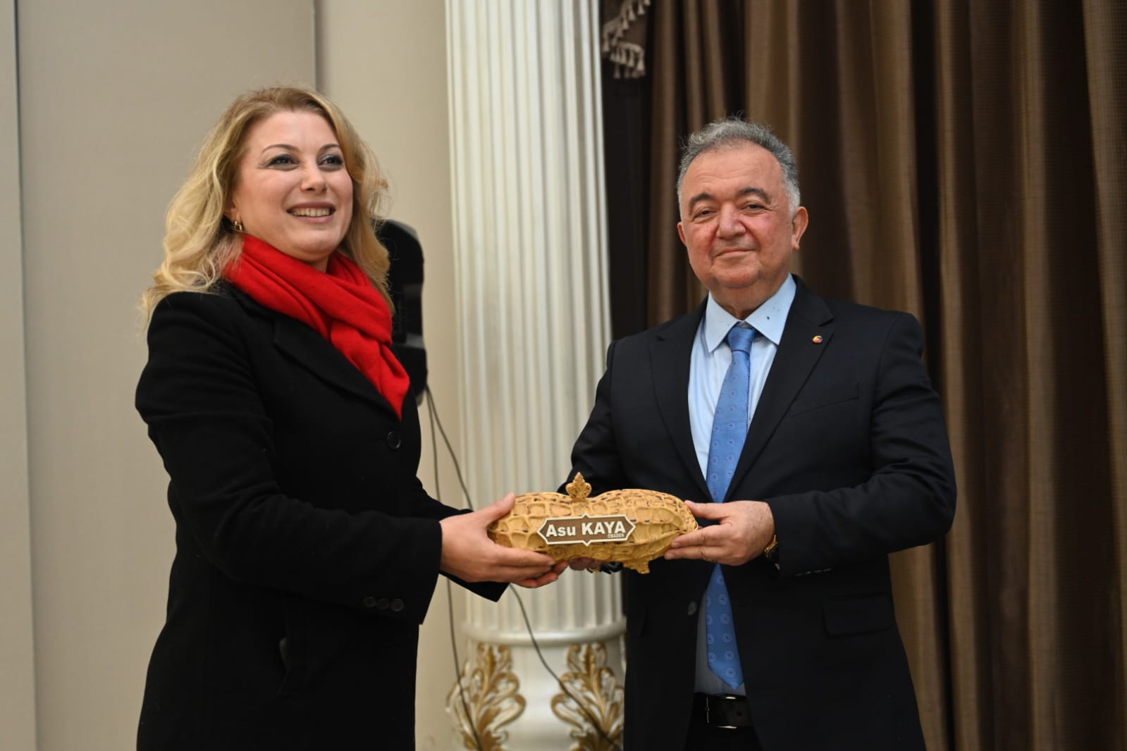 Milli Eğitim Bakanlığı Temel Eğitim Genel Müdürlüğü Programlar ve Öğretim Materyalleri Daire Başkanı Mustafa Kandırmaz’a emekli Vali Yardımcısı Mustafa Erkayıran tarafından, “Doçent” unvanı alan Eskişehir Osmangazi Üniversitesi Hukuk Fakültesi Ticaret Hukuku Anabilim Dalı Öğretim Üyesi Doç. Dr. Bilge Develi Aytuğar’a Yıldırım Beyazıt Üniversitesi Hukuk Fakültesi Dekanı Prof. Dr. Neslihan Karataş Durmuş tarafından plaketleri takdim edildi.