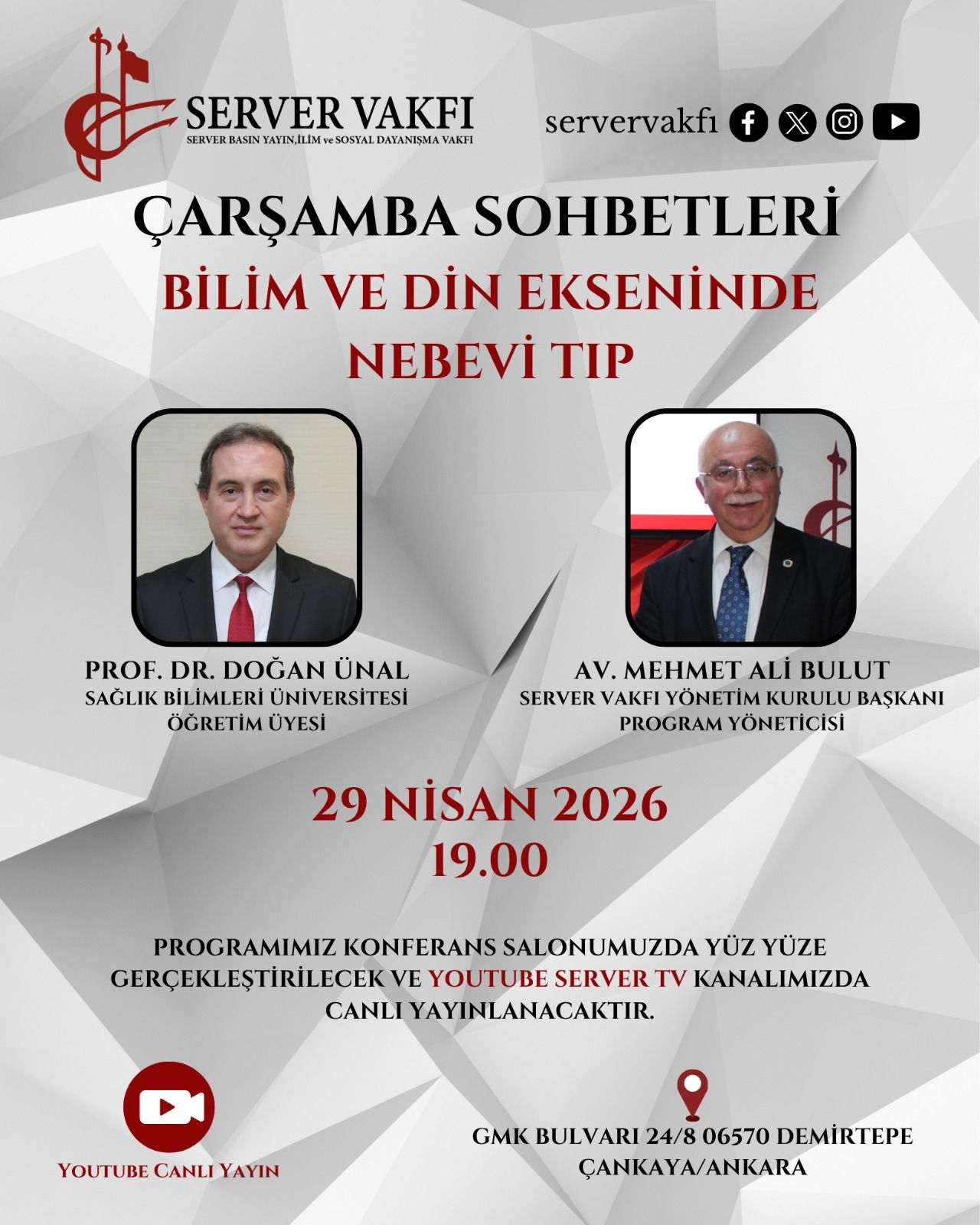 Etkinliği, Server Vakfı Yönetim Kurulu Başkanı Avukat Mehmet Ali Bulut yönetecek. Konuşma Server’in youtube kanalından canlı olarak da verilecek.