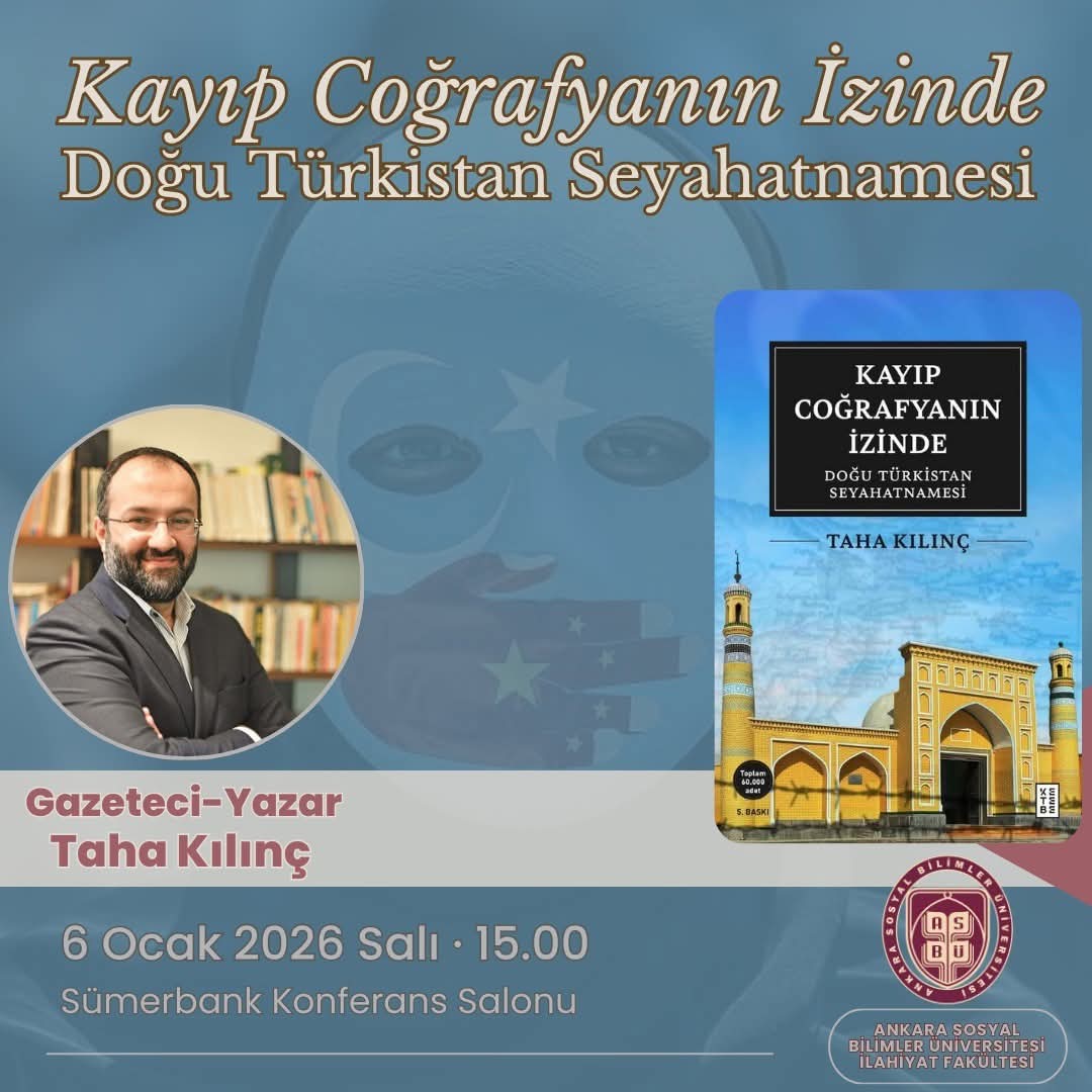 Ankara Sosyal Bilimler Üniversitesi (ASBÜ) İlahiyat Fakültesi’nin ev sahipliğinde gerçekleştirilecek söyleşide Kılınç, Doğu Türkistan coğrafyasına dair kaleme aldığı gözlemlerini, tanıklıklarını ve düşünsel arka planı katılımcılarla paylaşacak. Programda, bölgenin yakın tarihi, kültürel dokusu ve insan hikâyeleri ele alınırken, Doğu Türkistan’ın günümüzde karşı karşıya olduğu sorunlar da bütüncül bir bakışla değerlendirilecek.
