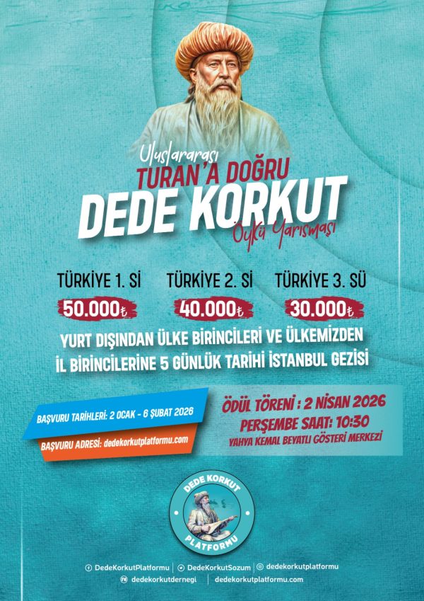 Dedekorkut Platformu, “Turan’a Doğru Dede Korkut Öykü Yarışması” düzenliyor. Liseler arası düzenlenecek yarışmada son başvuru tarihi 6 Şubat 2025 olarak belirlendi.